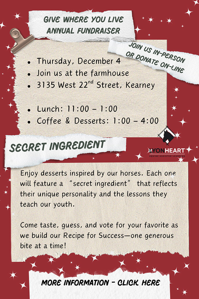 LyonHeart 3135 West 22nd St., Kearney, NE, United StatesThis program focuses on listening skills through engaging equine-assisted activities aimed at enhancing your child's communication abilities. By partnering with a horse, your child will improve both verbal and non-verbal communication, witnessing firsthand the importance of giving and receiving directions effectively.